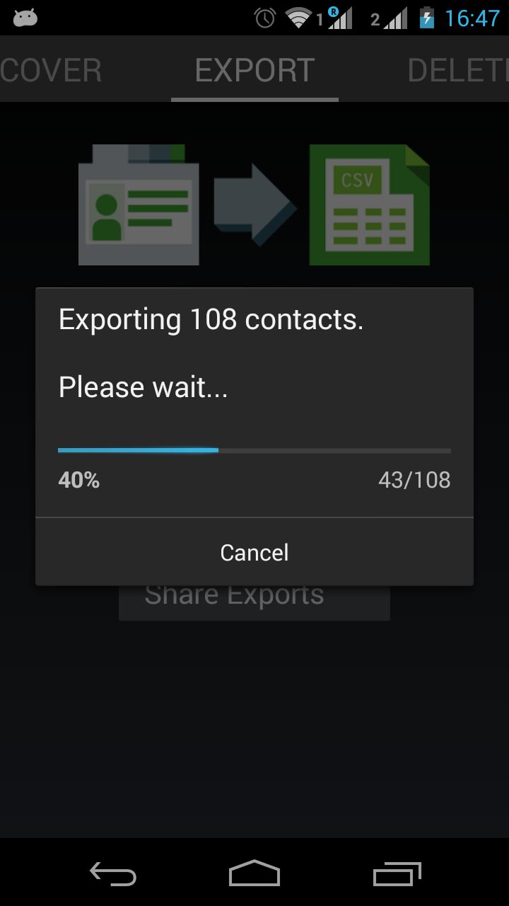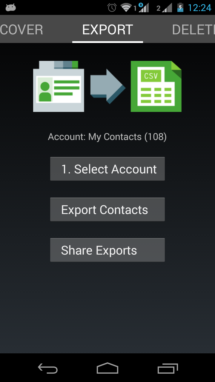 Export Android contacts from any account on the phone to an Excel CSV file for saving safely and securely.