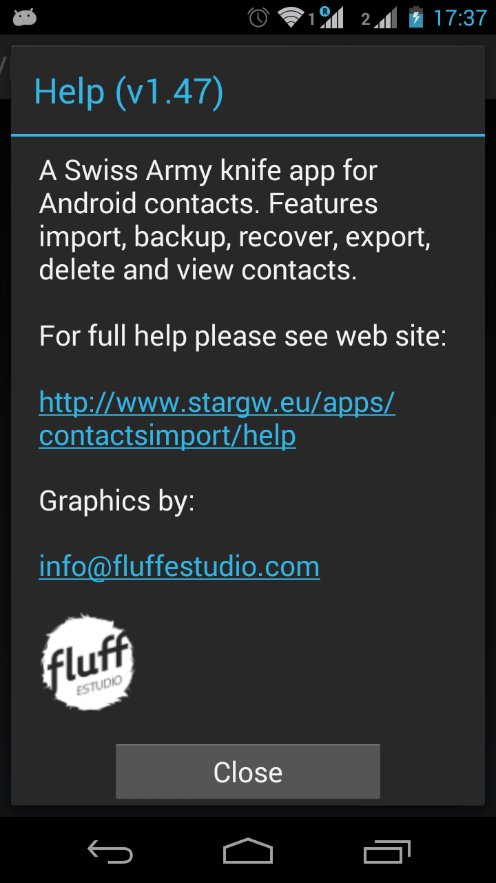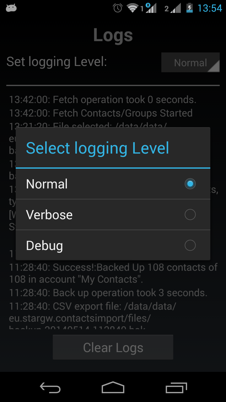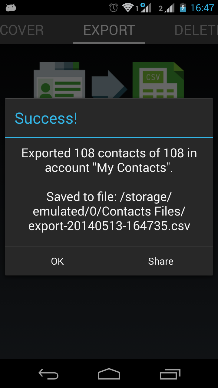 Modify or delete the contents of your USB storage. | android.permission.WRITE_EXTERNAL_STORAGE | Needed to save contact backup and export files to the SD card |