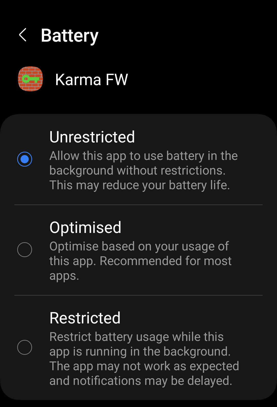 I wrote the app for myself, and released it in case others may find it useful. If you like Karma FW buy me a coffee with the link below: