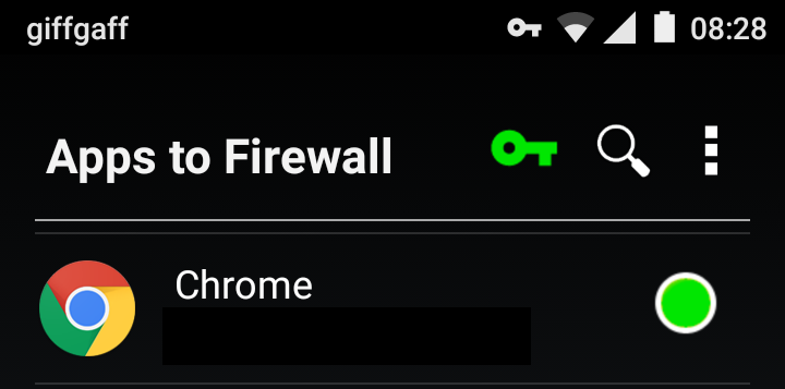 To firewall an app and block its access to the Internet simply press the Green Go icon.