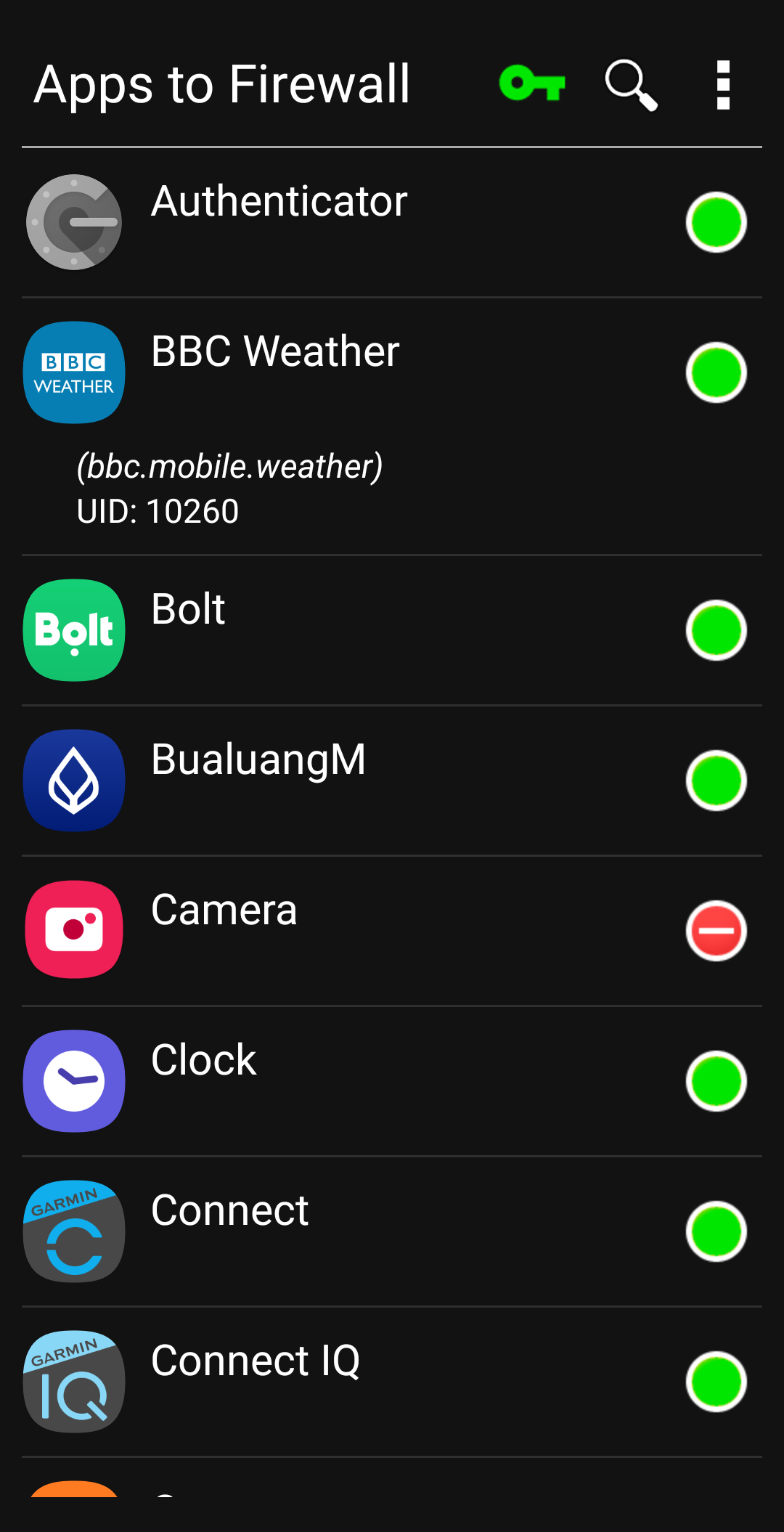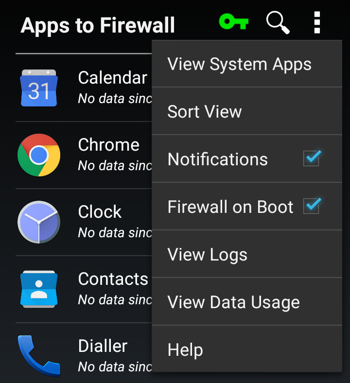 If the firewall starts successfully the Red Key icon will change to Green, and a small key icon will be shown in the notification bar at the top.