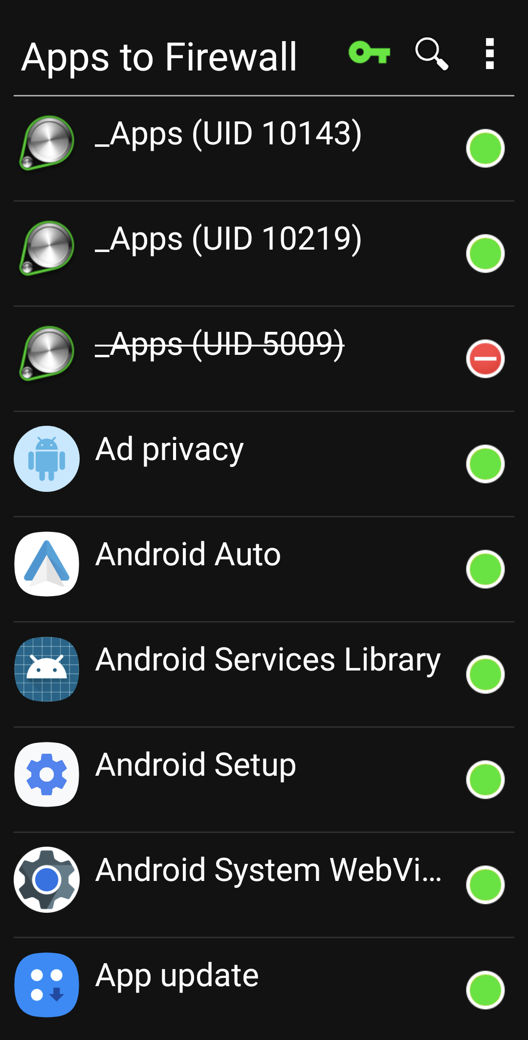 The reason we do this is because we have to firewall based on the UID. If apps share the same UID then they can only be blocked or allowed as a group. This usually only applies to system apps. System app groups vary from phone to phone. The example above shows Google services.